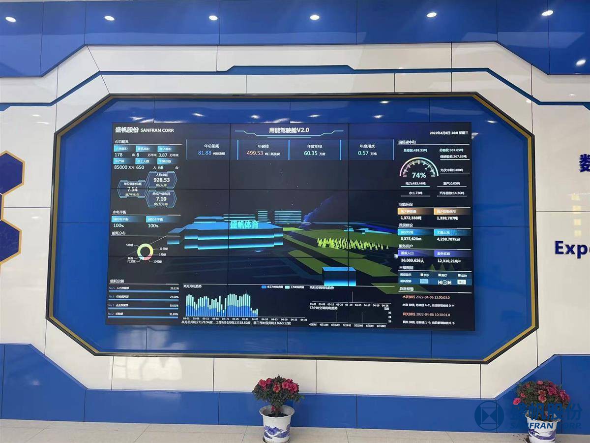 4月6日,武漢盛帆電子股份有限公司一樓展示大廳,一面數(shù)據(jù)跳動(dòng)的藍(lán)色電子屏引人注目。屏中部是整個(gè)園區(qū)的三維地圖,園區(qū)內(nèi)每棟建筑,甚至綠植都有立體圖形。點(diǎn)擊任意建筑,能耗數(shù)據(jù)立馬顯示。整個(gè)園區(qū)水、電走向,在電子屏上一目了然。