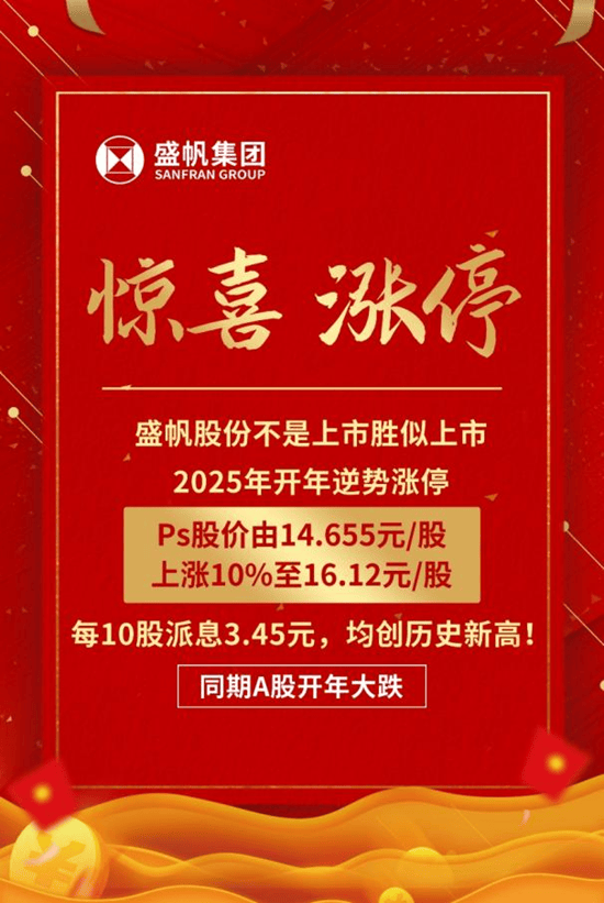 新年伊始,不少盛帆股份的員工就接連收到兩個(gè)好消息:一是公司推出了每10股派息3.45元的分配方案,二是公司股權(quán)的變現(xiàn)價(jià)格開(kāi)年便強(qiáng)勢(shì)漲停,在2025年為大家?guī)?lái)了振奮人心的大驚喜。