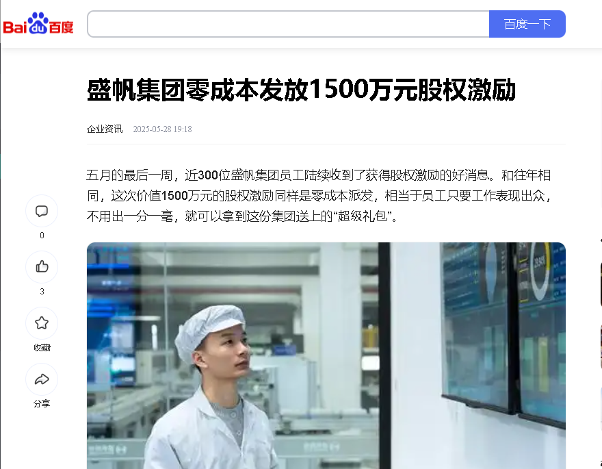 五月的最后一周,近300位盛帆集團(tuán)員工陸續(xù)收到了獲得股權(quán)激勵(lì)的好消息。和往年相同,這次價(jià)值1500萬元的股權(quán)激勵(lì)同樣是零···