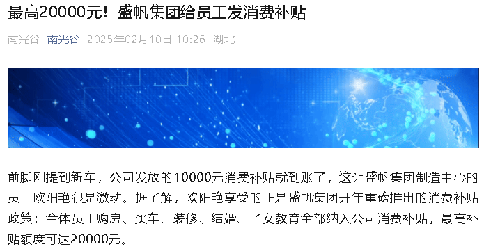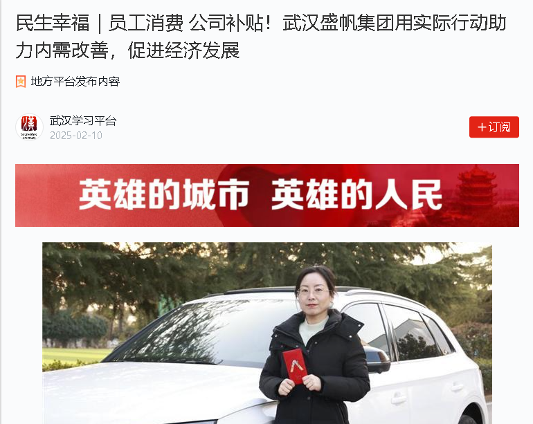 前腳剛提到新車,公司發(fā)放的10000元消費(fèi)補(bǔ)貼就到賬了,這讓盛帆集團(tuán)制造中心的員工歐陽艷很是激動。據(jù)了解,歐陽艷享受的···