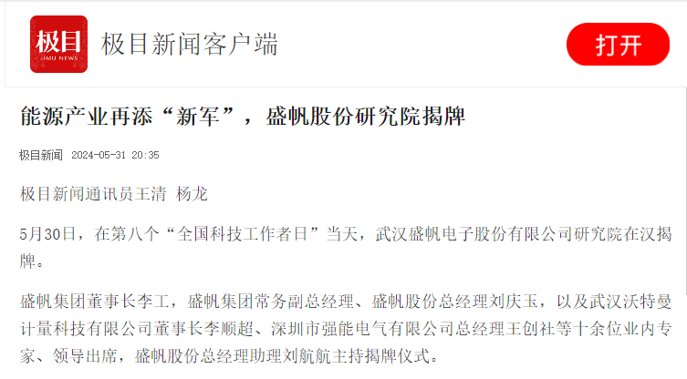 極目新聞通訊員王清 楊龍5月30日,在第八個“全國科技工作者日”當天,武漢盛帆電子股份有限公司研究院在漢揭牌。盛帆集···