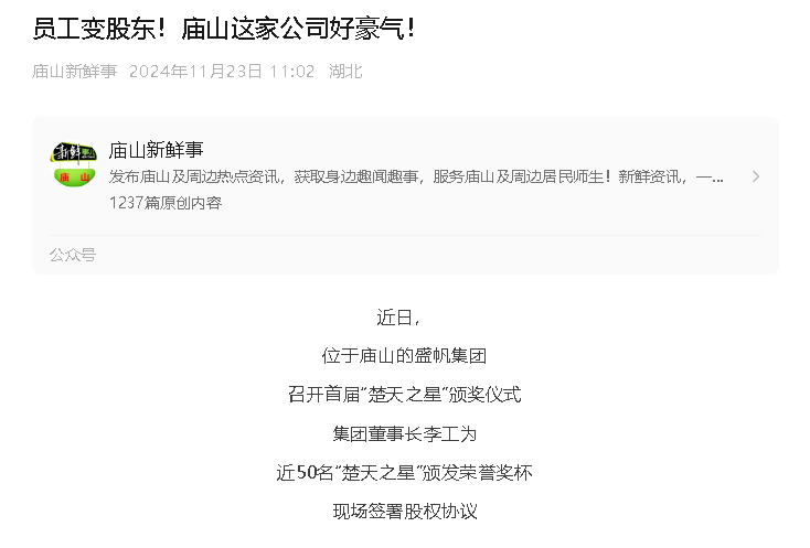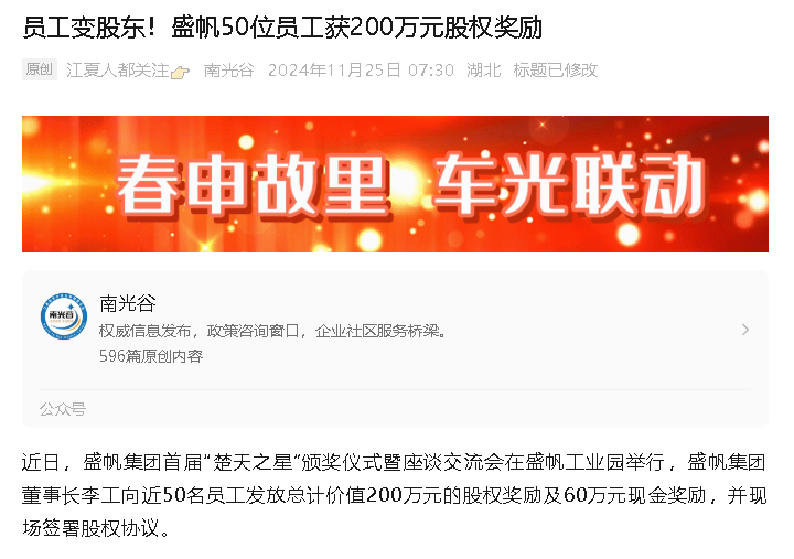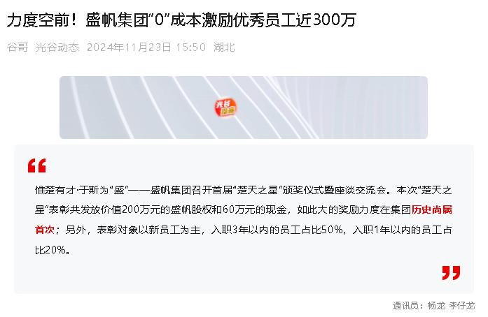 “沒想到剛入職公司一年三個月,就得到了2000股股份和6000元現金獎勵?!?1月21日,盛帆集團00后員工謝志勇在獲獎后連連···